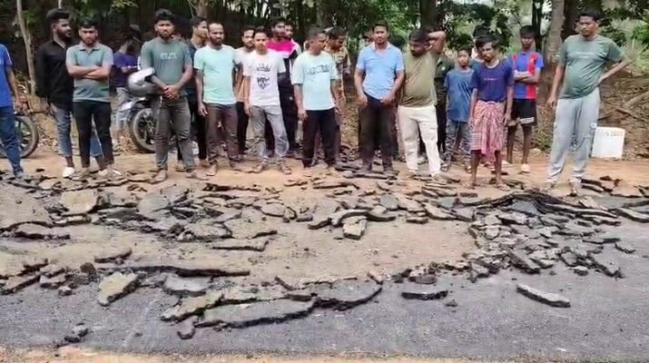 কাজ শুরুর তিন দিনের মধ্যেই প্রশ্নের মুখে রাস্তা সংস্কার, ক্ষুব্ধ এলাকাবাসী